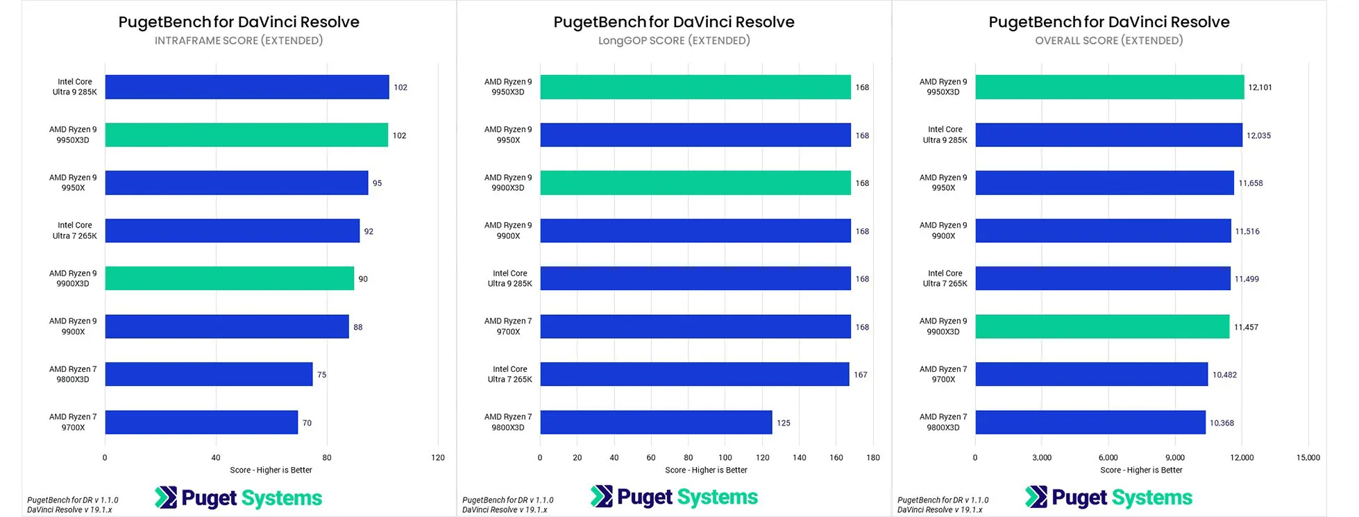 Nhìn chung, chúng tôi không khuyến nghị chi thêm tiền cho 9950X3D chỉ để sử dụng DaVinci Resolve. Tuy nhiên, việc lựa chọn 9950X3D sẽ không ảnh hưởng đáng kể đến hiệu suất. Các CPU cấp thấp hơn có thể mang lại giá trị tốt hơn, và 285K vẫn là lựa chọn cần thiết để xử lý codec LongGOP nếu phụ thuộc vào GPU.