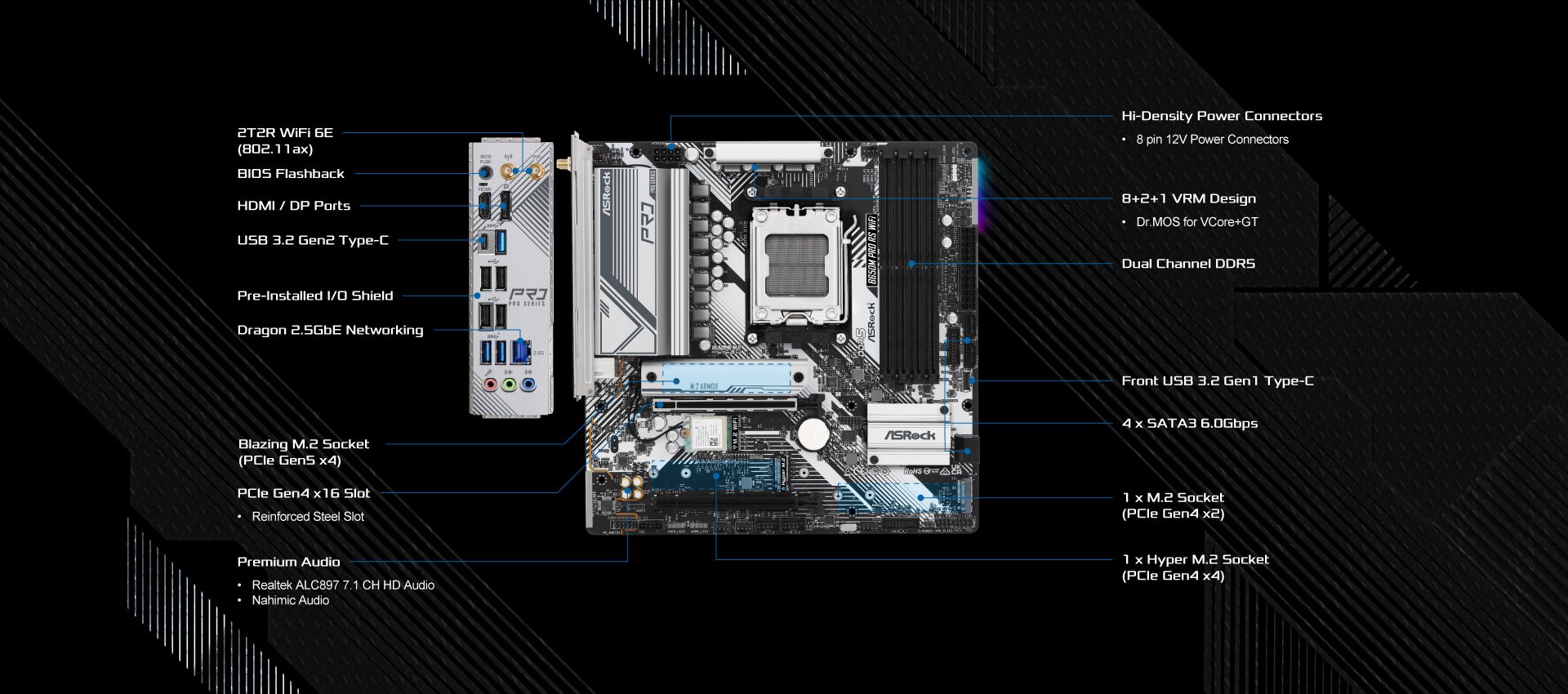B650M Pro RS WiFi với một thiết kế đậm chất giá trị xây dựng ở phân khúc chủ đạo.