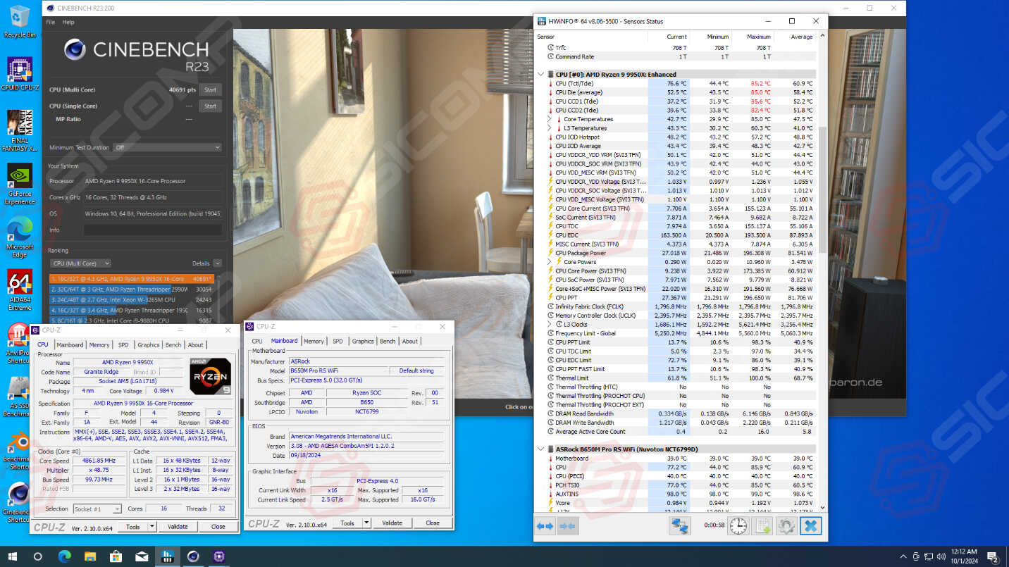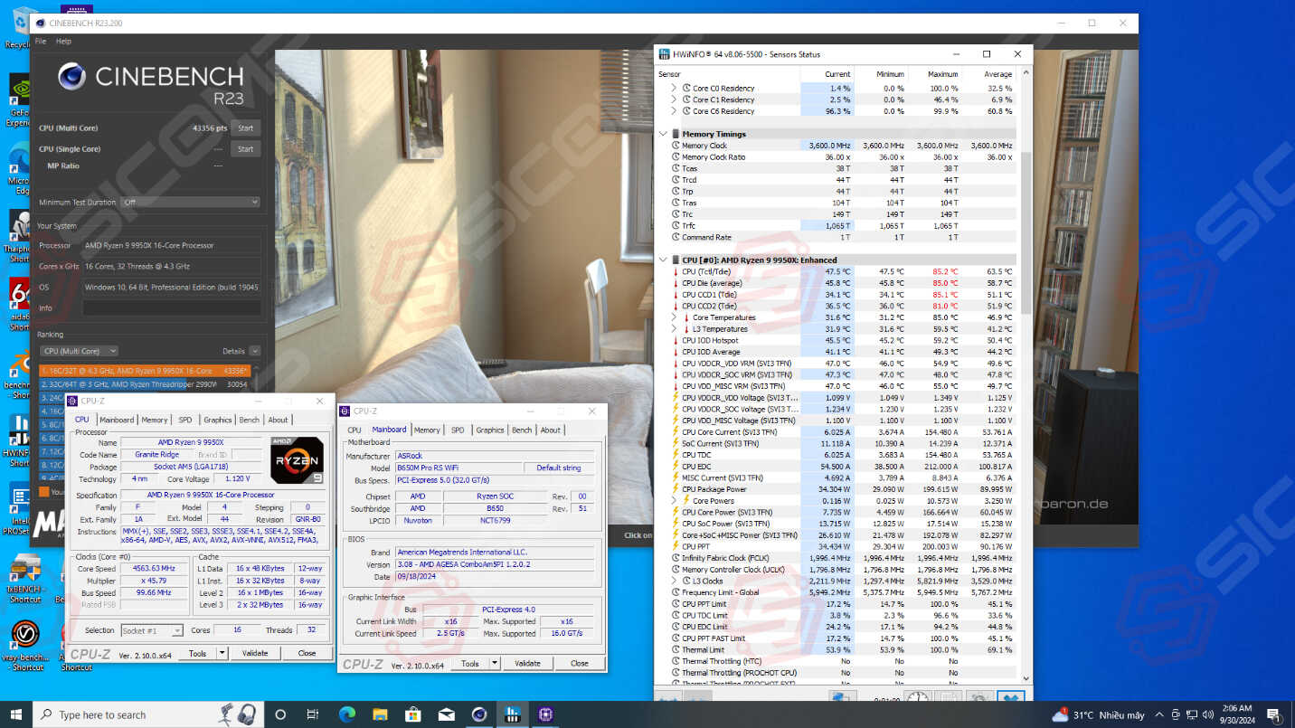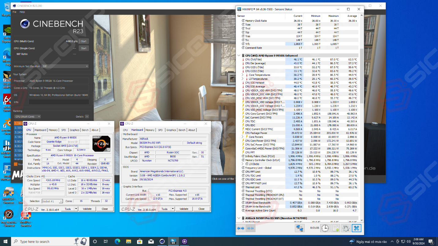 Kết quả ở mặc định, Cinebench R23 cho điểm số gần 41K pts của Ryzen 9 9950X với mức CPU Package tối đa 200W, điểm số tương đồng với các bo mạch chủ cao cấp khác.