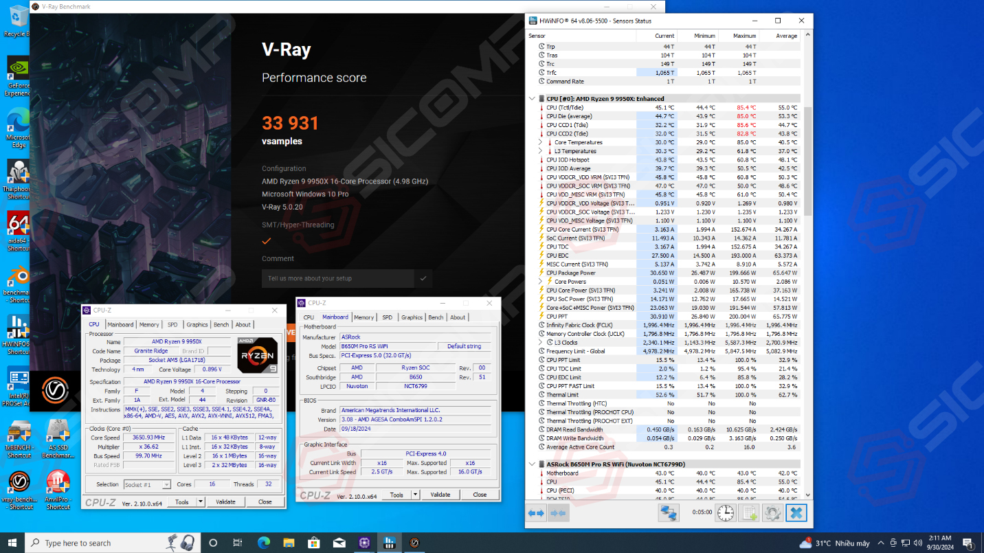 Kết quả là Cinebench R23 mang lại hiệu năng tốt hơn khi đạt con số gần 44K, tức là hơn ~ 3K điểm so với để mặc định. Mức load tối đa 200W nhưng nhiệt độ chỉ ở mức 85 độ C. VRAY cũng cho kết quả tốt hơn so với mặc định.