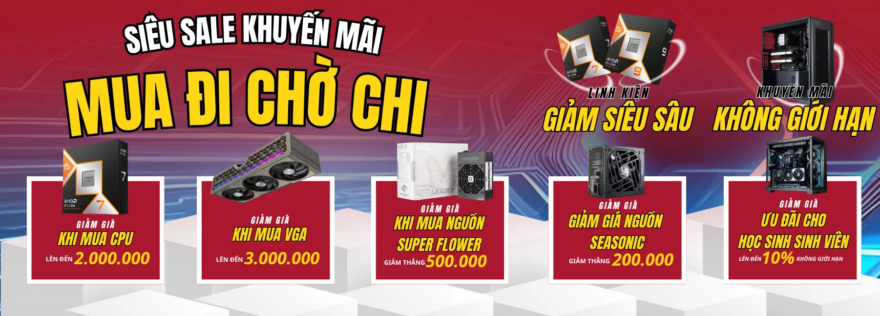 Linh kiện quyết định khả năng chơi game và xử lý đồ họa. Bạn có thể chọn VGA NVIDIA (RTX) cho sự ổn định và công nghệ AI, hoặc AMD Radeon (RX) cho hiệu năng chơi game thuần túy với mức giá tốt.