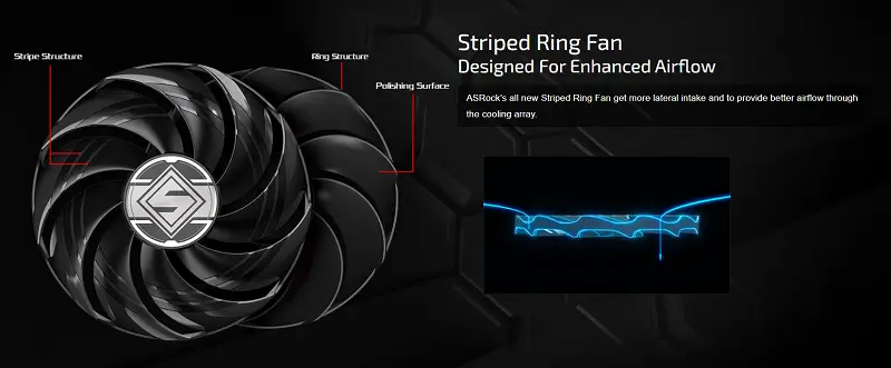 Để chắc chắn rằng VGA có thể hoạt động một cách trơn tru, ASRock đã trang bị hệ thống tản Steel Legend 3 quạt nổi tiếng của mình