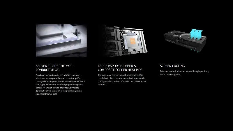Tiếp xúc trực tiếp với bề mặt GPU và các chip nhớ VRAM là một buồng hơi bằng đồng kích thước lớn hoạt động bằng nguyên lý chuyển pha lỏng khí diễn ra liên tục, cho phép truyền nhiệt nhanh hơn để đảm bảo nhiệt độ đồng đều trên toàn bộ mặt tiếp xúc của card.