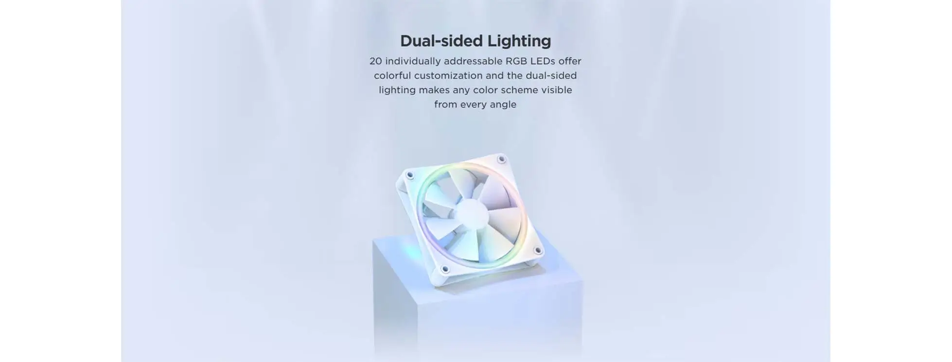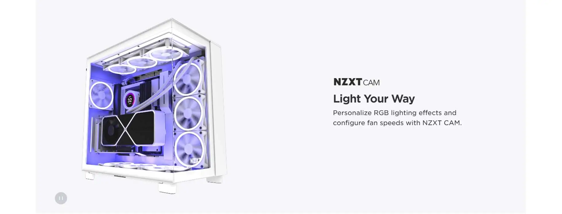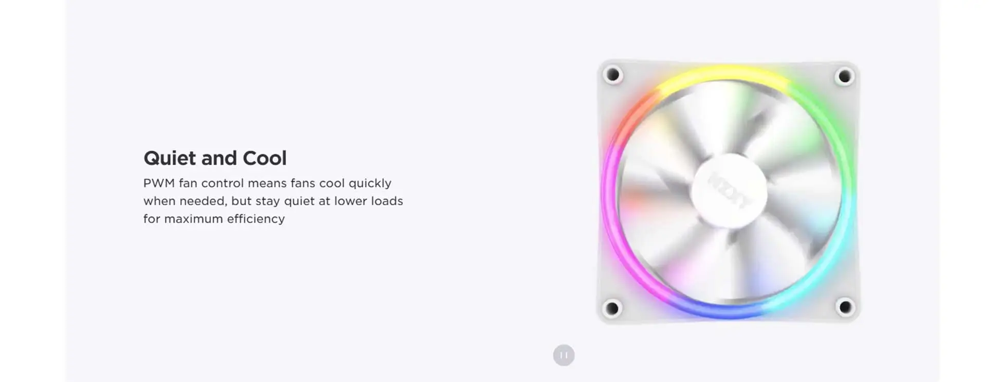 - Ánh sáng RGB rực rỡ: Với 20 đèn LED RGB trên mỗi quạt, bạn có thể tùy chỉnh hàng triệu màu sắc và hiệu ứng ánh sáng khác nhau thông qua phần mềm CAM của NZXT.