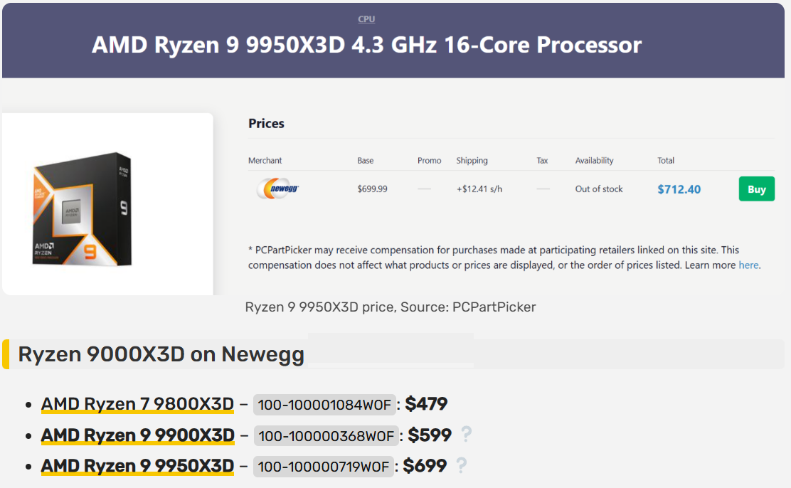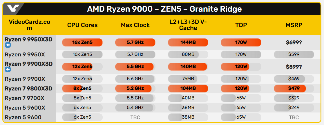 Lộ giá bán CPU Ryzen 9 9950X3D 699$ và 9900X3D 599$