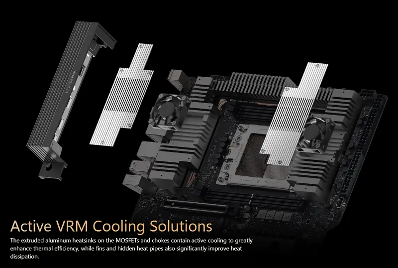 - Tản nhiệt VRM kim loại nguyên khối: Thiết kế tản nhiệt thông minh với các lá nhôm xếp lớp và ống dẫn nhiệt cỡ lớn, tối ưu hóa luồng không khí để giữ cho khu vực cấp nguồn mát mẻ, đảm bảo tuổi thọ và độ tin cậy tối đa cho hệ thống.