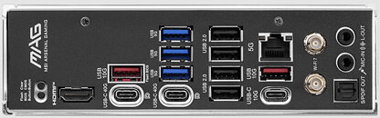 MAG X870 TOMAHAWK WIFI tuân theo triết lý EZ DIY của MSI, đơn giản hóa việc lắp đặt card đồ họa, SSD M.2, bộ tản nhiệt và ăng-ten Wi-Fi. Nó hỗ trợ Wi-Fi 7 cho tốc độ không dây nhanh và LAN 5G cho mạng có dây cực nhanh. I/O phía sau bao gồm 2x USB 40G với đầu ra DisplayPort, 2x USB 10G (Loại A), 3x USB 5G (Loại A), 4x cổng USB 2.0 và đầu cắm USB Loại C phía trước cung cấp nguồn điện 27 W để sạc các thiết bị.
