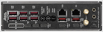 Khả năng kết nối hàng đầu, với LAN 5G và 2.5G, Wi-Fi 7 và hỗ trợ USB4 cho các thiết bị và thiết bị ngoại vi thế hệ tiếp theo. Bảng I/O phía sau cung cấp 2x USB 40G với đầu ra DisplayPort, 11x USB 10G (2x Type-C và 9x Type-A) và Nút thông minh cho chức năng phím tắt. Ngoài ra, nó bao gồm một đầu cắm USB Type-C phía trước với công suất cung cấp 27 W để sạc nhanh, một tính năng giúp MPG X870E CARBON WIFI trở nên khác biệt. Giống như các bo mạch chủ MSI 800-series khác, nó cũng bao gồm các tính năng EZ DIY, giúp việc xây dựng và nâng cấp PC trở nên dễ dàng.