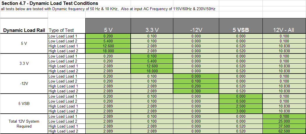 - Capacitance load: 3300uF per rails (12V1, 12V2, 5V, 3.3V, 5Vsb)