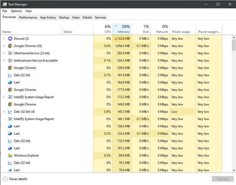 • Ở trong tab Processes, tìm ứng dụng đang chiếm nhiều RAM không cần thiết.