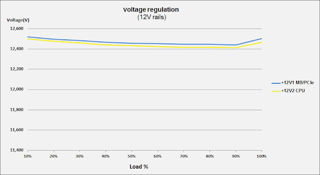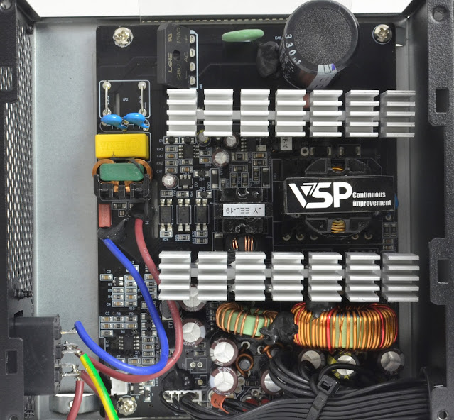 VSPECOMAXE550W có chất lượng điện áp khá. Hiệu suất đạt 83,46%@230Vac như những gì phía VSP cam kết. Hệ thống cáp bẹ đen mềm và sử dụng tụ điện Nhật Bản đem lại sự tin tưởng hơn. Tốc độ quạt làm mát tương đối cao khi khởi động sẽ khiến PSU hoạt động chưa được êm ái