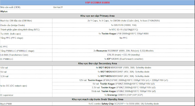 VSP chọn XinHai Electronic Technology làm nhà sản xuất (OEM) sản phẩm ECOMAXE550W. Với thiết kế Dual forward sử dụng mạch in 2 lớp FR4 và không được trang bị tính năng Active PFC