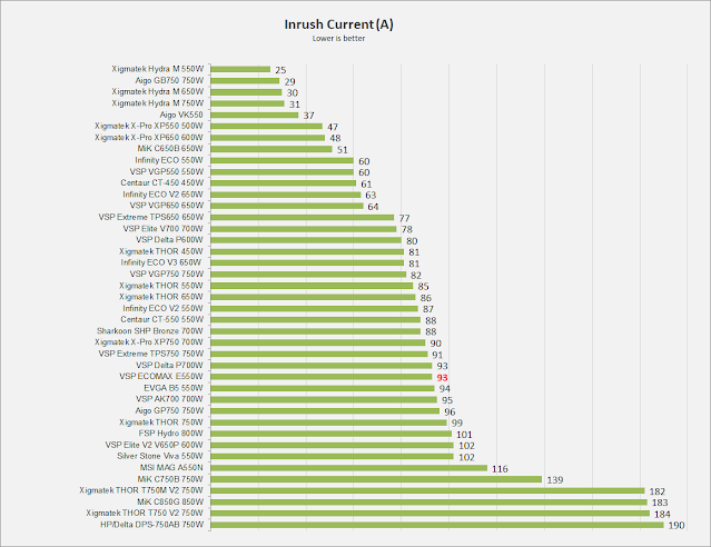 ECOMAXE550Wcó mức lưu điện chưa đủ để đạt chuẩn ATX, tính hiệu PW_ok chưa được chính xác khi mất sau khi đường 12V rơi xuống dưới 11.2V