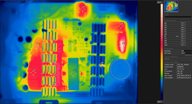 Linh kiện nóng nhất trên ECOMAXE550W chính là phần NTC với mức nhiệt gần 100°C..Tuy được sinh ra có thể hoạt động ở nhiệt độ cao một cách bình thường. Nhưng việc này sẽ làm tăng hao phí đôi chút rơi trên NTC cũng như làm nóng các linh kiện nằm xung quanh lên