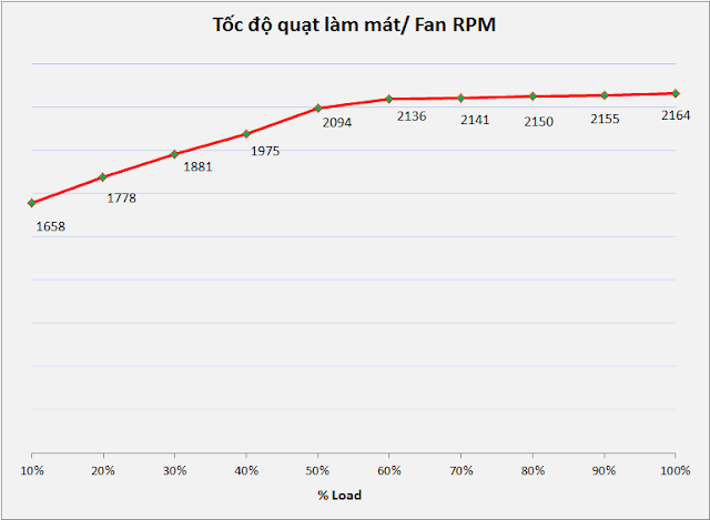 Tốc độ quạt làm mát tăng tuyến tính theo nhiệt độ với tốc độ tối đa khoảng gần 2200RPM để nhanh chóng làm mát khối linh kiện công suất phía dưới