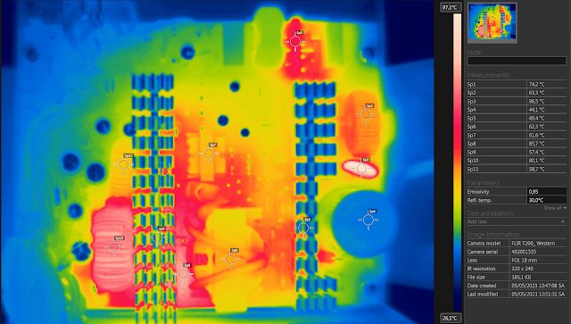 Linh kiện nóng nhất trên C650B chính là phần NTC với mức nhiệt gần chạm 100°C. Tuy được sinh ra có thề hoạt động ở nhiệt độ cao một cách bình thường. Nhưng việc này sẽ làm tăng hao phí đôi chút rơi trên NTC cũng như làm nóng khu vực xung quanh lên